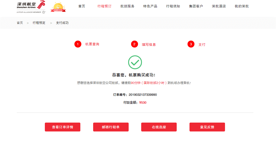 3. 暂不支持深航境外销售或外币支付的机票开具发票;